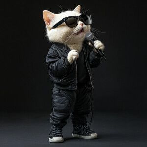«a white cat wearing sunglasses wearing a black jacket wearing pa...»