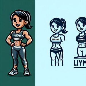 «A happy petite female wearing customized gymwear.»