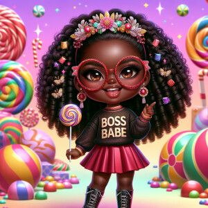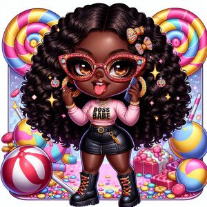 «A boujee chibi-style African American girl with a Candy Land the...»