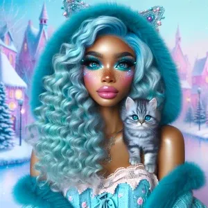 «An airbrushed image of a fantasy-inspired girl with vibrant turq...»