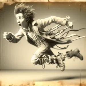 «A whimsically bizarre time traveler, wearing a mishmash of futur...»