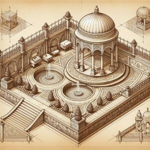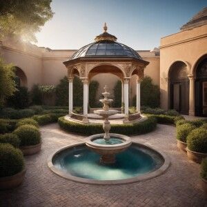 «Design a classic luxury roof garden featuring an opulent square-...»