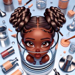 «Bird’s-eye view, realistic digital art of a glamorous chibi-styl...»