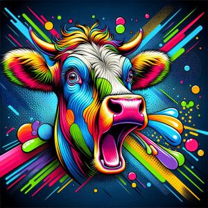 «Design a vibrant pop art illustration of a cow with a colorful a...»