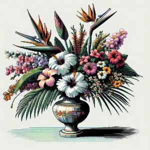 «Create a high-resolution image of vibrant tropical flowers, insp...»