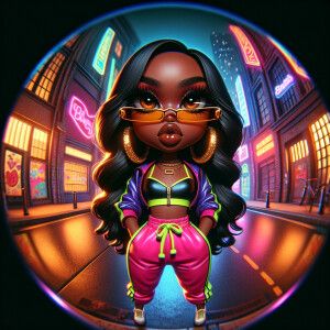 «A high-gloss chibi-style African American girl with brown eyes,...»