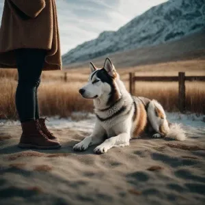 «pregnant husky dog animal on all fours»