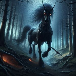 «an evil centaur prowls with malevolent grace. Its eyes burn with...»