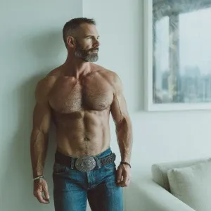 «Generate an image featuring a mature, muscular man exuding confi...»