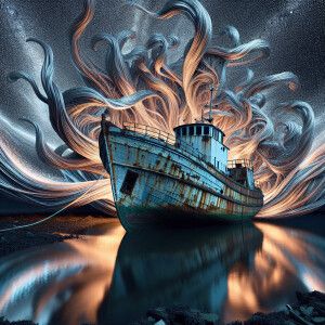 «A shimmering cascade of metallic tendrils twists and turns aroun...»
