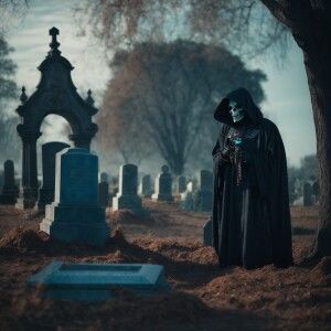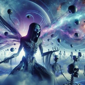 «Alien reaper collects souls from a cemetery. Throws skulls at ca...»