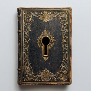 «Ornate Vintage Book with Central Golden Keyhole: An antique book...»