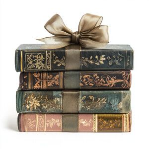 «A neatly stacked pile of ornate, decoratively bound books adorne...»