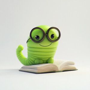 «Create an image of a vivid green, happy worm with a charming smi...»