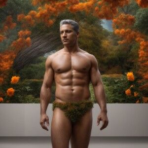 «Create a photorealistic, hyper-detailed image of a naturist man...»