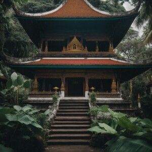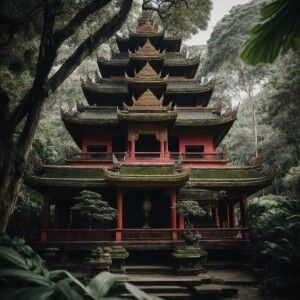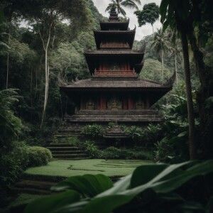 «Theravada Buddhist temple located in bali surrounded by lush gre...»