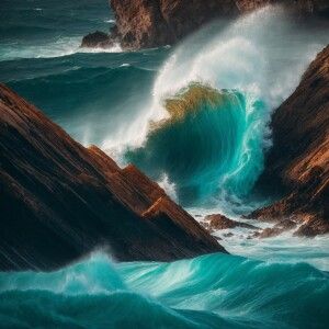 «Create a photorealistic image of turquoise and deep blue waves v...»
