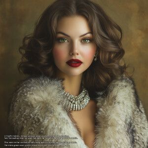 «“A highly realistic, mid-length portrait of a glamorous woman wi...»