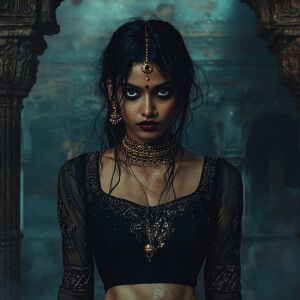 «An Indian female vampire, with Goth-inspired aesthetic, set agai...»