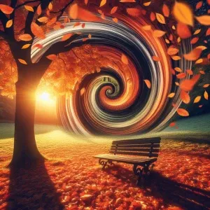 «Generate an image of a tranquil autumn park, centralizing an age...»