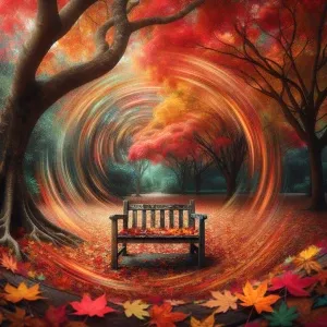 «Capture a scene depicting the vibrant hues of autumn with leaves...»