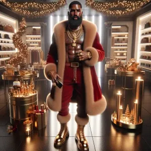 «A full-body view of a hyper-realistic African American Santa Cla...»