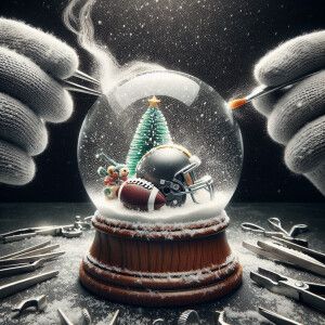 «snow globe that shows a Dallas Cowboys helmet and Christmas tree...»