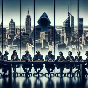 «Glammed-up African American girl with long, flowing hair, dresse...»