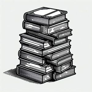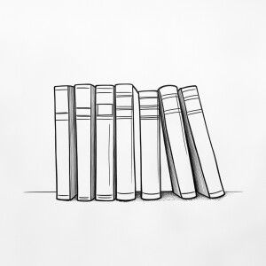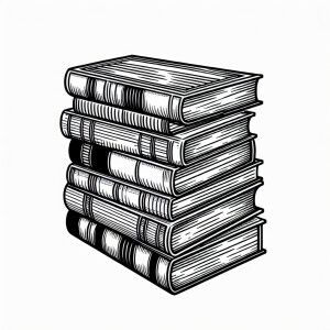 «Create an image of a stack of books outlined in black on a white...»