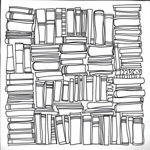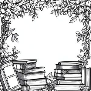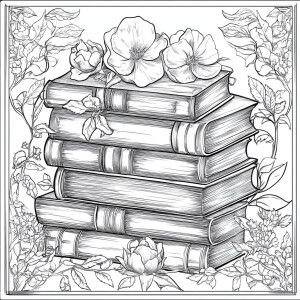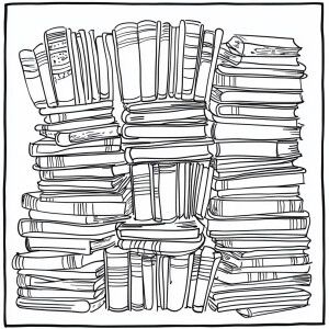 «Design a coloring page featuring a neatly arranged stack of book...»