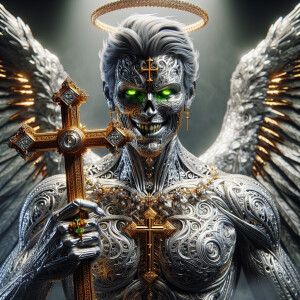 «a highly-detailed Angel with vibrant silver intricate skin, n...»