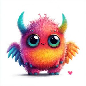 «Create an image of an adorable, whimsical monster with heart-sha...»