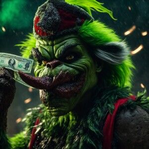 «impeccably detailed macabre grinch wearing a tattered santa suit...»