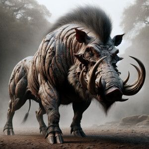 «"Create a realistic image of a wild pig with an intimidating, ag...»
