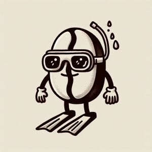 «A cartoon guy who is a coffee bean wearing swimming goggles on h...»