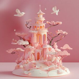 «A multi-dimensional paper kirigami craft featuring an ancient dr...»