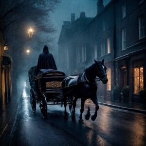 «A spectral, skeletal figure cloaked in a tattered black robe dri...»