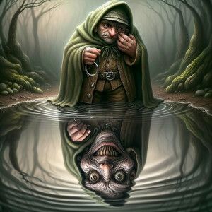 «Surreal Distorted water reflection, (Upper part: Frodo Baggins,...»