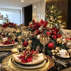 «Centro de mesa navideño, alegre en un sofisticado ambiente navid...»