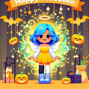 «Create a cutesy Halloween graphic of Cartoon little girl with bl...»