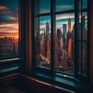«view of the manhattan skyline from a penthouse window»