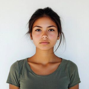 «A 21-year-old Filipina woman with a cute appearance, clear skin,...»
