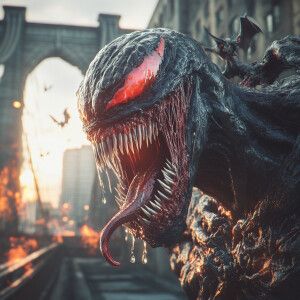 «horror flame art,24k up close image of venom with dark neon tatt...»