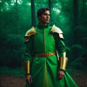 «A time-worn adventurer with a steampunk flair, sporting a tatter...»
