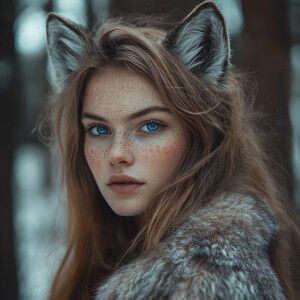 «a photograph of an attractive woman with long hair and wolf ears...»