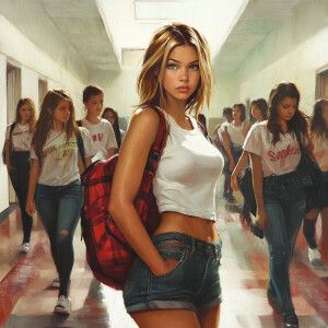 «In striking contrast against the backdrop of a dimly-lit alleywa...»