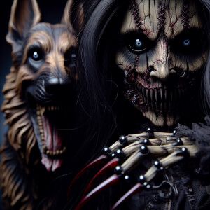 «closeup of an intensely detailed horrorcore combined with dark-a...»