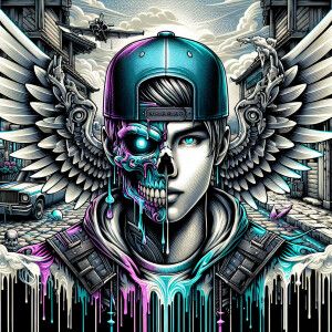 «eye-catching heavy digital comic book Drip style digital paintin...»