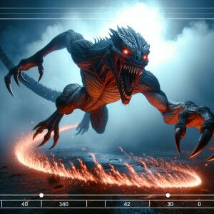«a hyper-realistic portrait of a jumping beast, lunging towards t...»