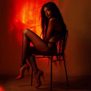 «A stunningly beautiful woman in alluring attire posing inside he...»